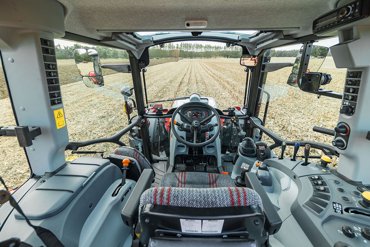 Novo vzmetenje kabine za gladko vožnjo, nov jasen prikaz parametrov in nastavitev stroja, pregledno strešno okno, funkcija sklopke in zavore S-Stop in pomoč pri krmiljenju (Variable Ratio Steering) bodo poskrbeli, da bodo dolgi delovni dnevi veliko manj naporni.